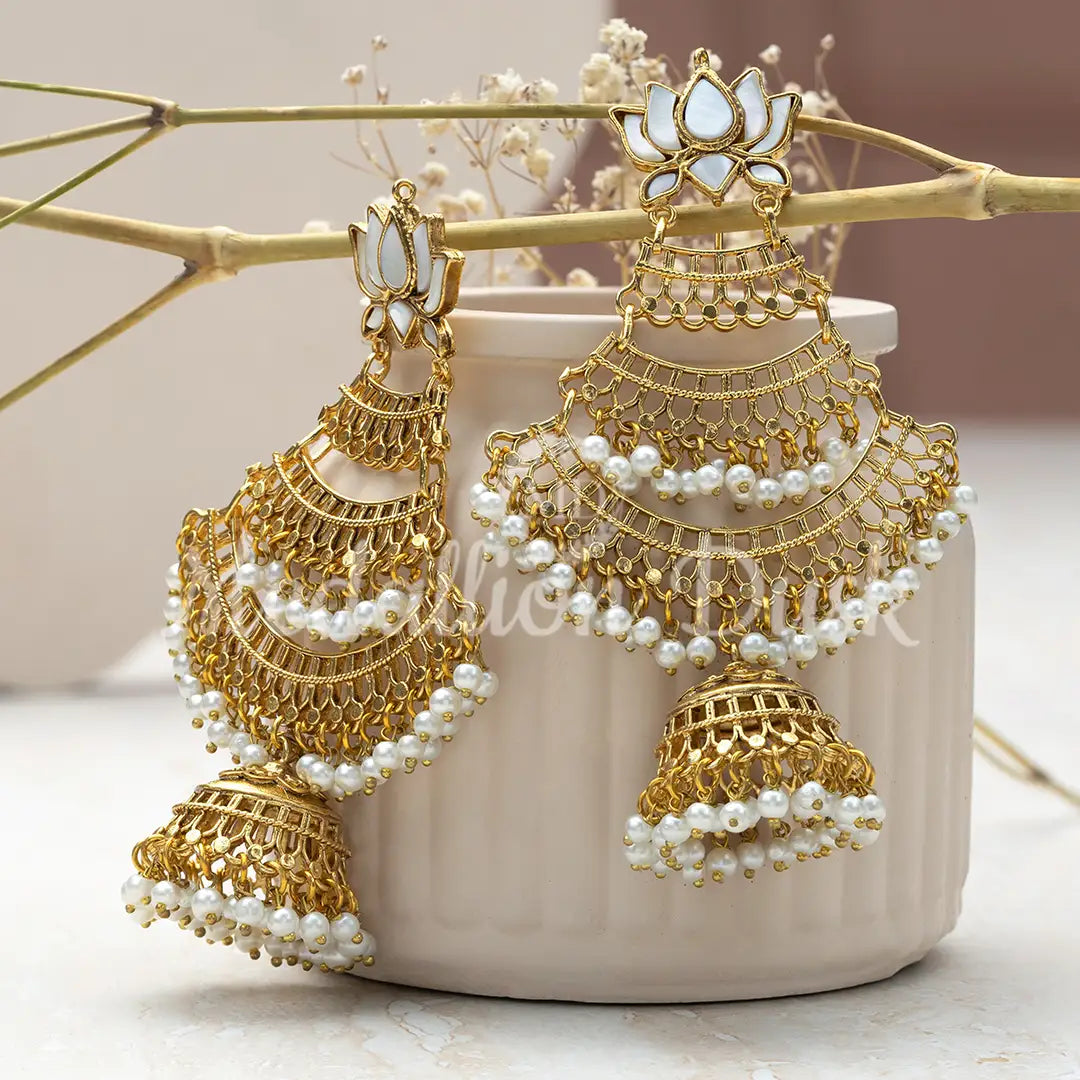 Petal and Pearls Jhumki Earrings